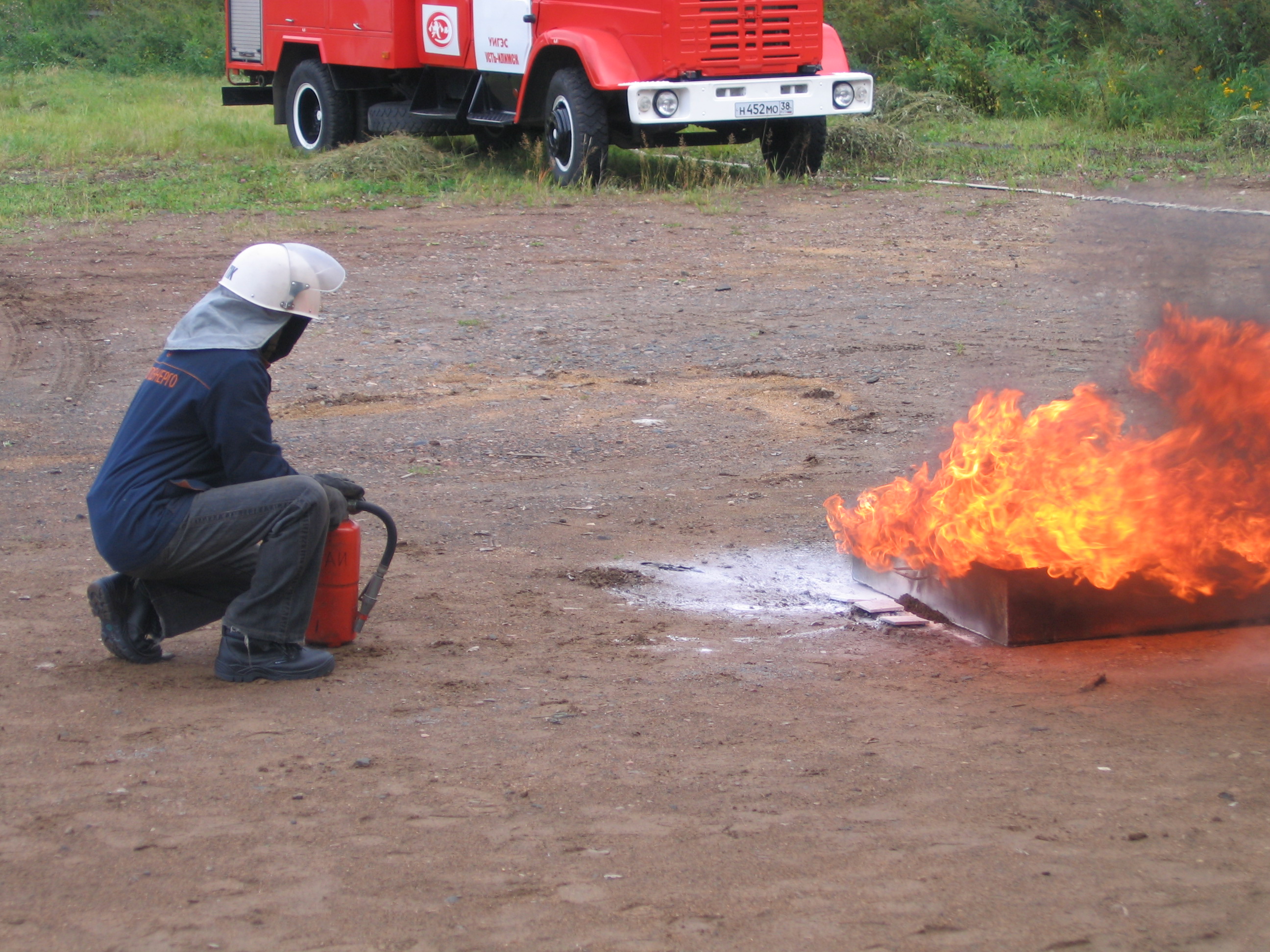 действиям в случае обнаружения пожара - проходил в классе ТБ на УИ ТЭЦ. Следующие 3 этапа по практическим применениям первичных средств – на полигоне пожарной команды г. Усть-Илимска ООО «Пожарная охрана «Иркутскэнерго».