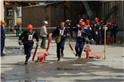 Соревнования добровольных пожарных формирований проходили в три этапа. На первом этапе нужно было правильно сообщить о месте возникновения пожара в пожарную охрану, второй этап - произвести тушение противня с горючей жидкостью огнетушителем, а на третьем этапе, нужно было от пожарного гидранта развернуть рукавную линию, преодолеть препятствие и из пожарного рукава со стволом, в который подается вода, сбить струёй воды мишень, находящуюся на стойке.