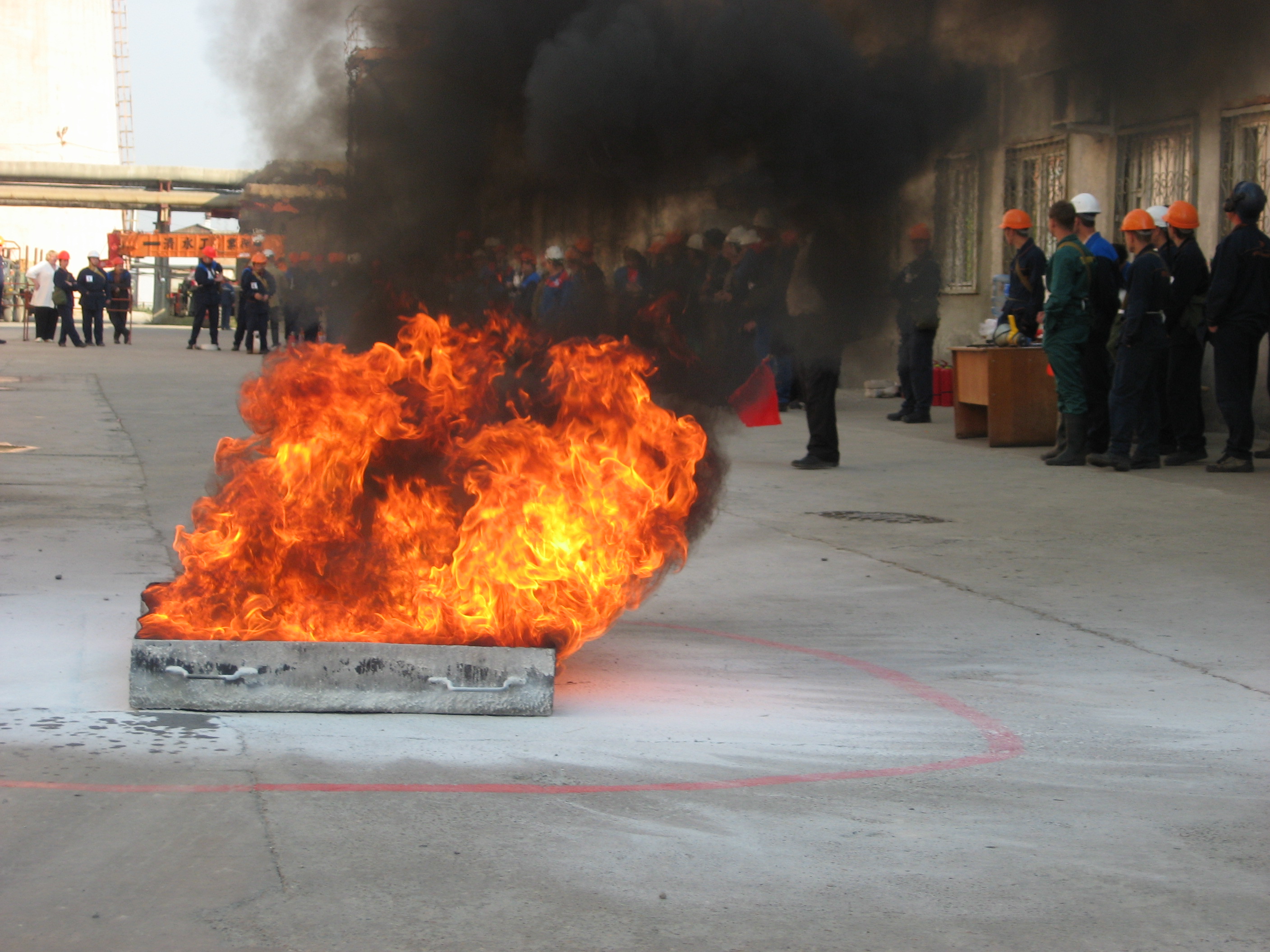 Второй этап- тушение горящей жидкости в противне с помощью огнетушителя.